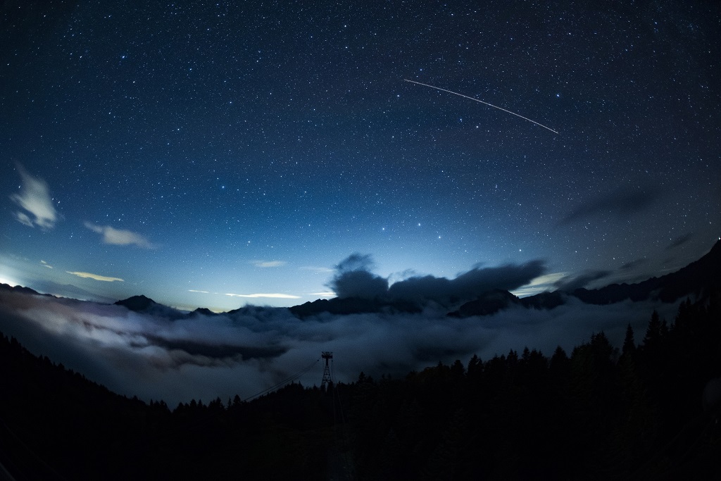 The Shinhotaka Ropeway operates a "Stargazing Service" that displays natural illuminations sparkling in the sky. Enjoy the thrill of looking up from the rooftop observation deck at an altitude of 2,156m, available only on certain days.