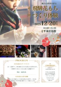 昨年開催し好評だった「飛騨の花餅つくり体験」を本年も平湯温泉にて開催いたします。雪国のお正月を彩る地域伝統の「花もちづくり」を是非体験下さい♬