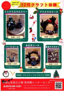 中部山岳国立公園 奥飛驒ビジターセンター主催による12月のイベント情報です。皆さんのご参加お待ちしています(^^♪