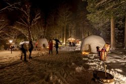 "Kamakura" of various sizes have appeared on the grounds of Hakusan Shrine in Shinhotaka Onsen and Nakao Kogen. You can enjoy the mystical precincts surrounded by trees and the fantastic atmosphere lit by lights. Adults and children alike can relax and enjoy the world unique to winter.
