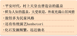 位于福地温泉观光设施、传说的乡内。室内浴池是日本古老民家用的木造浴池,露天温泉则用岩石筑成,可以一边欣赏恬静的福地风光一边享受泡浴乐趣。(福地)